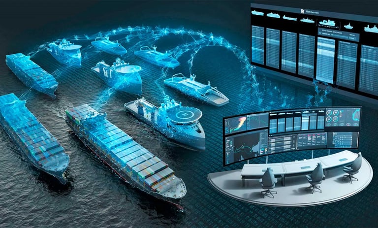 Sistemas de monitoreo en tiempo real y plataformas inteligentes para la gestión integral y automatización de procesos logísticos portuarios.